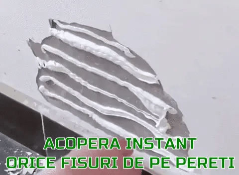 După aplicare, pasta umple fisura sau gaura. O nivelezi ușor, o lași să se usuce, iar peretele revine la normal.